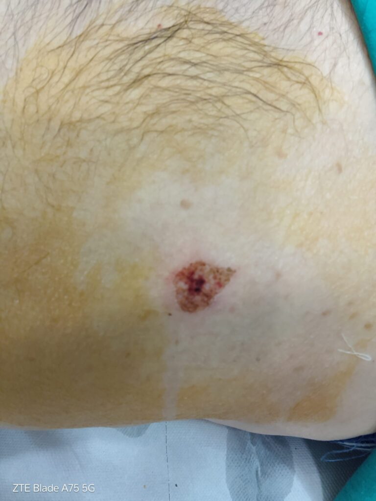 Nel video si può osservare la vaporizzazione di una formazione cutanea benigna moruliforme, localizzata sul fianco. In anestesia locale il LASER CO2 la asporta senza provocare sanguinamenti e senza necessità di sutura.